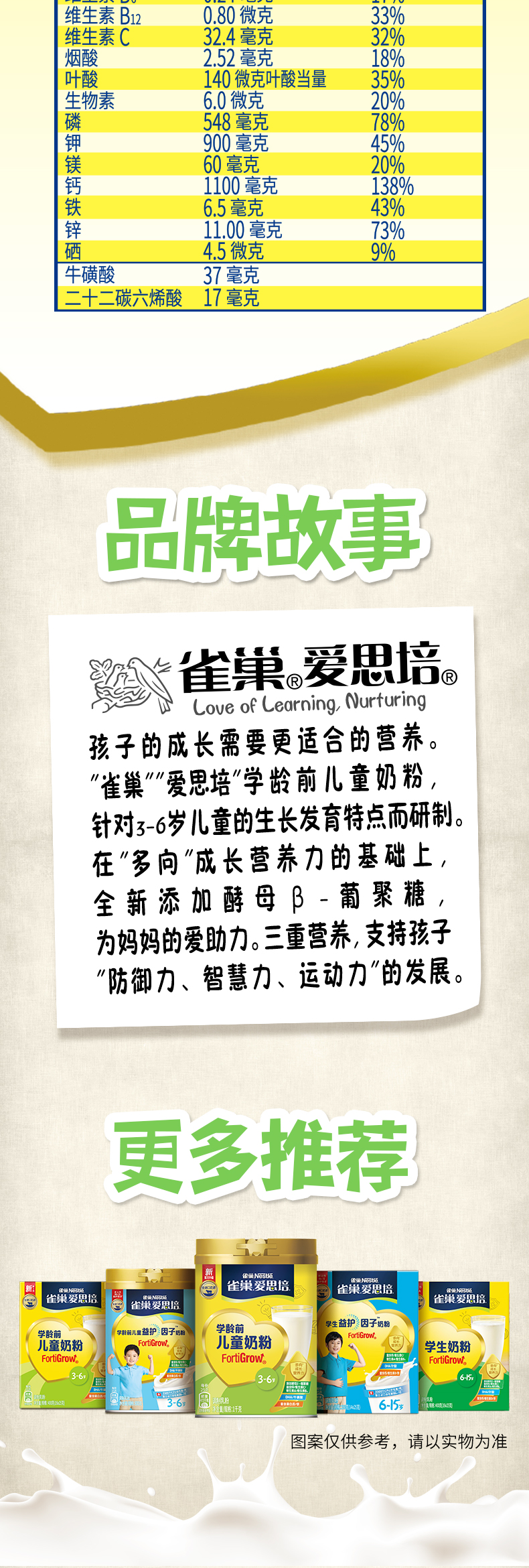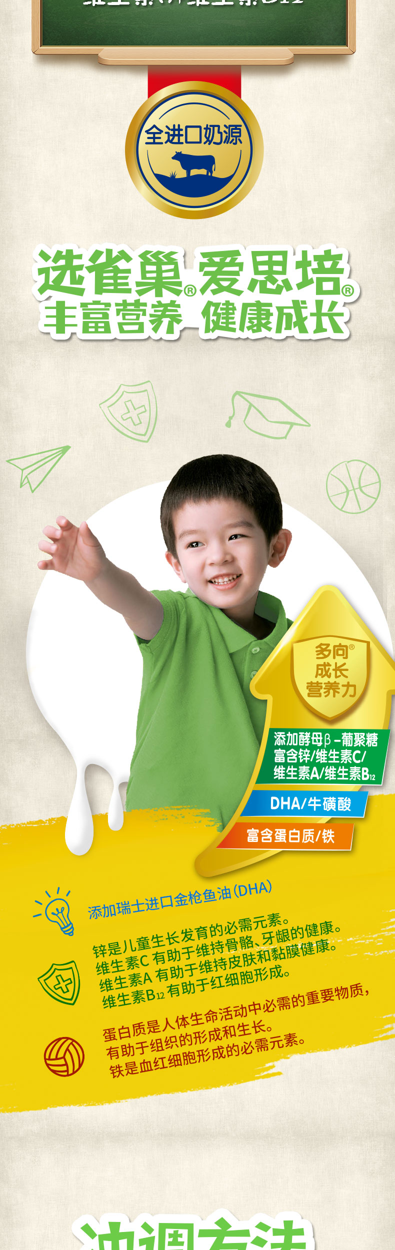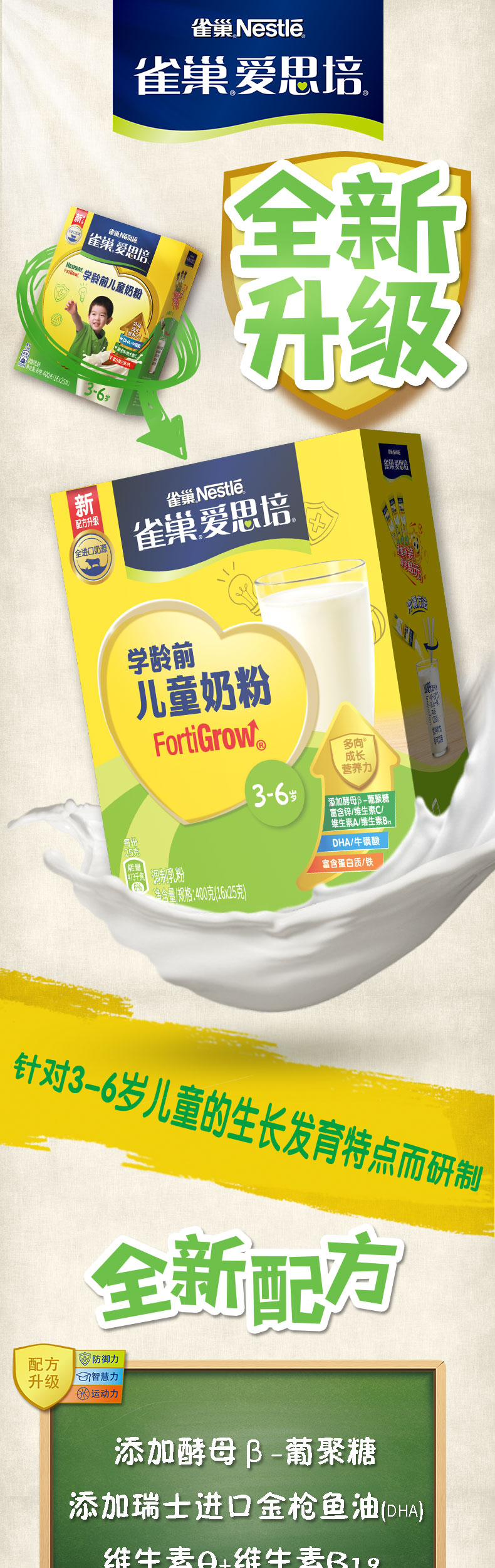 商品介绍:雀巢爱思培3-6岁儿童营养牛奶粉400g