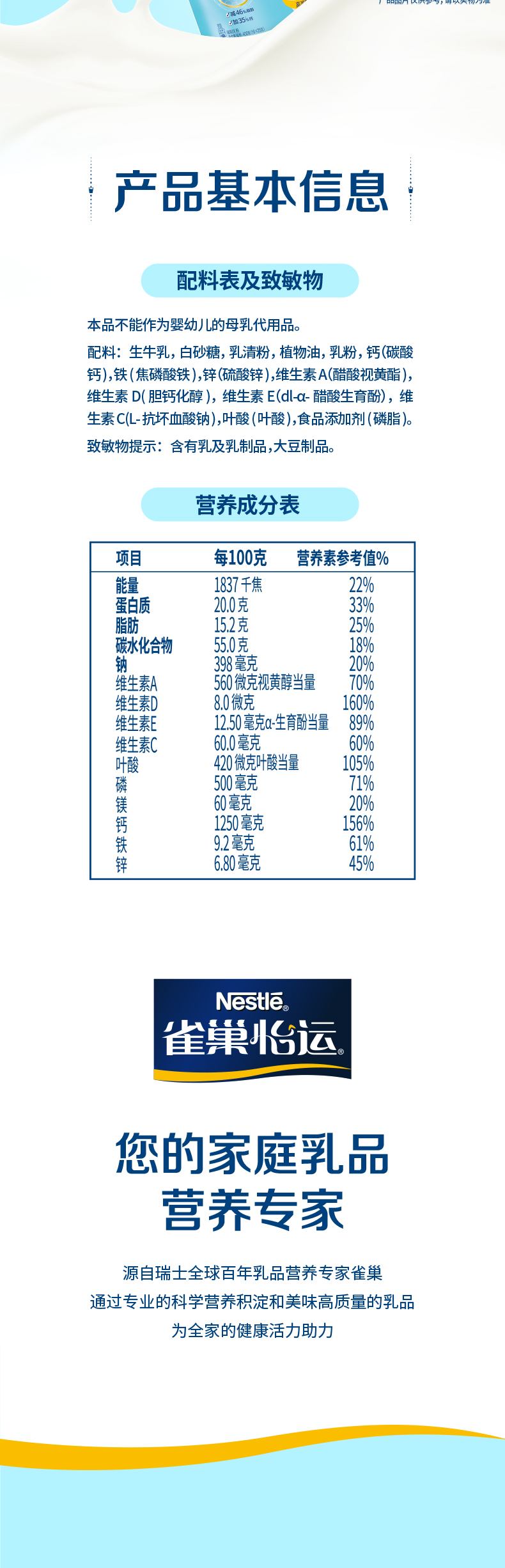 商品介绍:雀巢怡运高钙营养成人女士牛奶粉400g*2盒