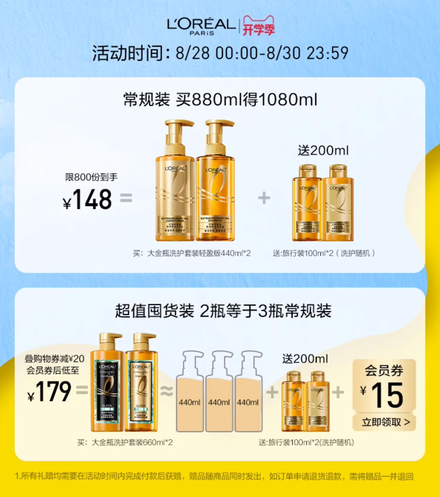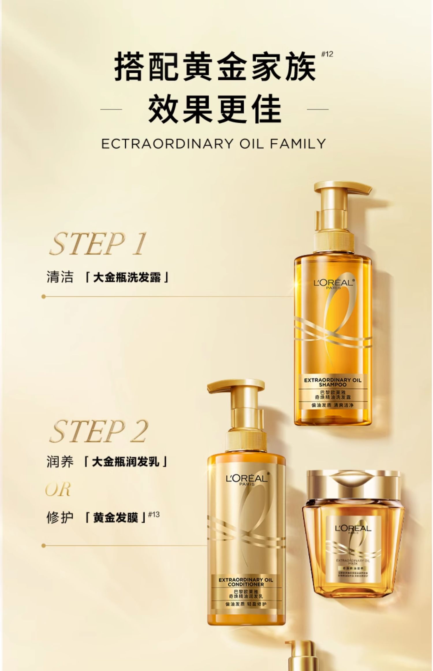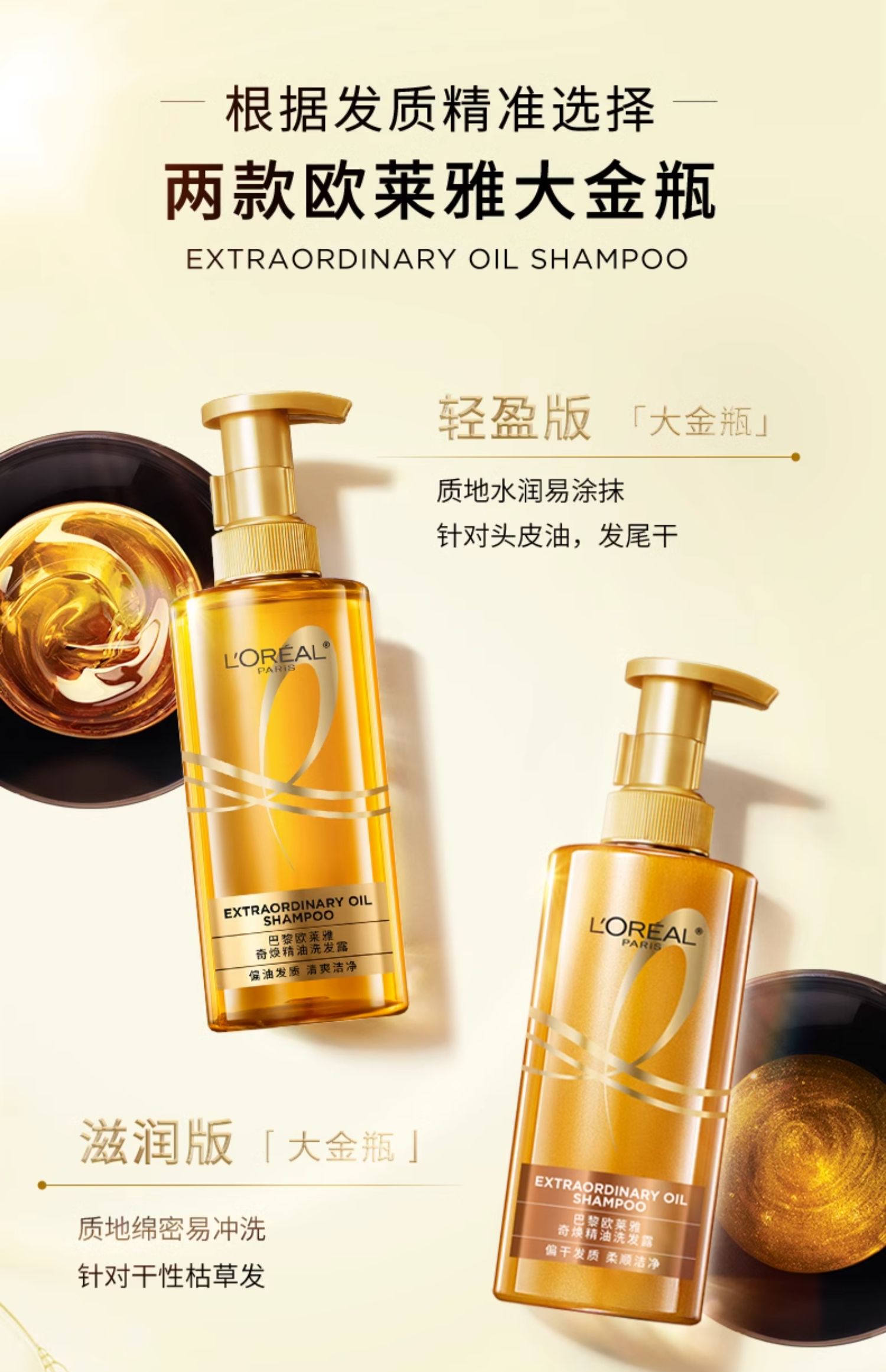 商品介绍:欧莱雅大金瓶洗护套装1080ml