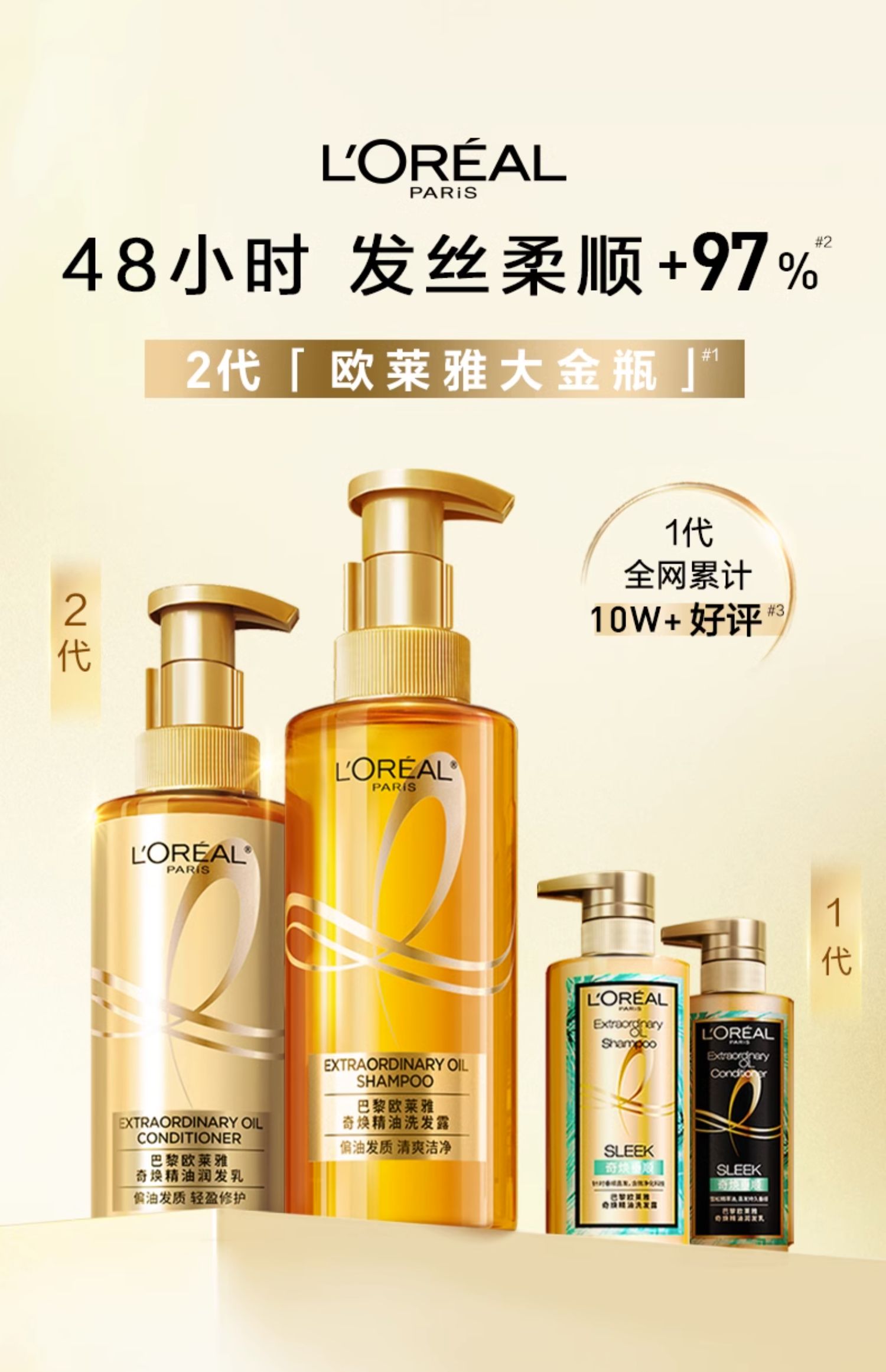 商品简介:【【1】买就赠旅行装100ml*2;【2】叠加叠加津贴300-30,到手141.2】出差带更方便,2代大金瓶,48小时发丝柔顺97%,不同发质选择不同套装,专业美发体验润而不油,养护油亮发质~