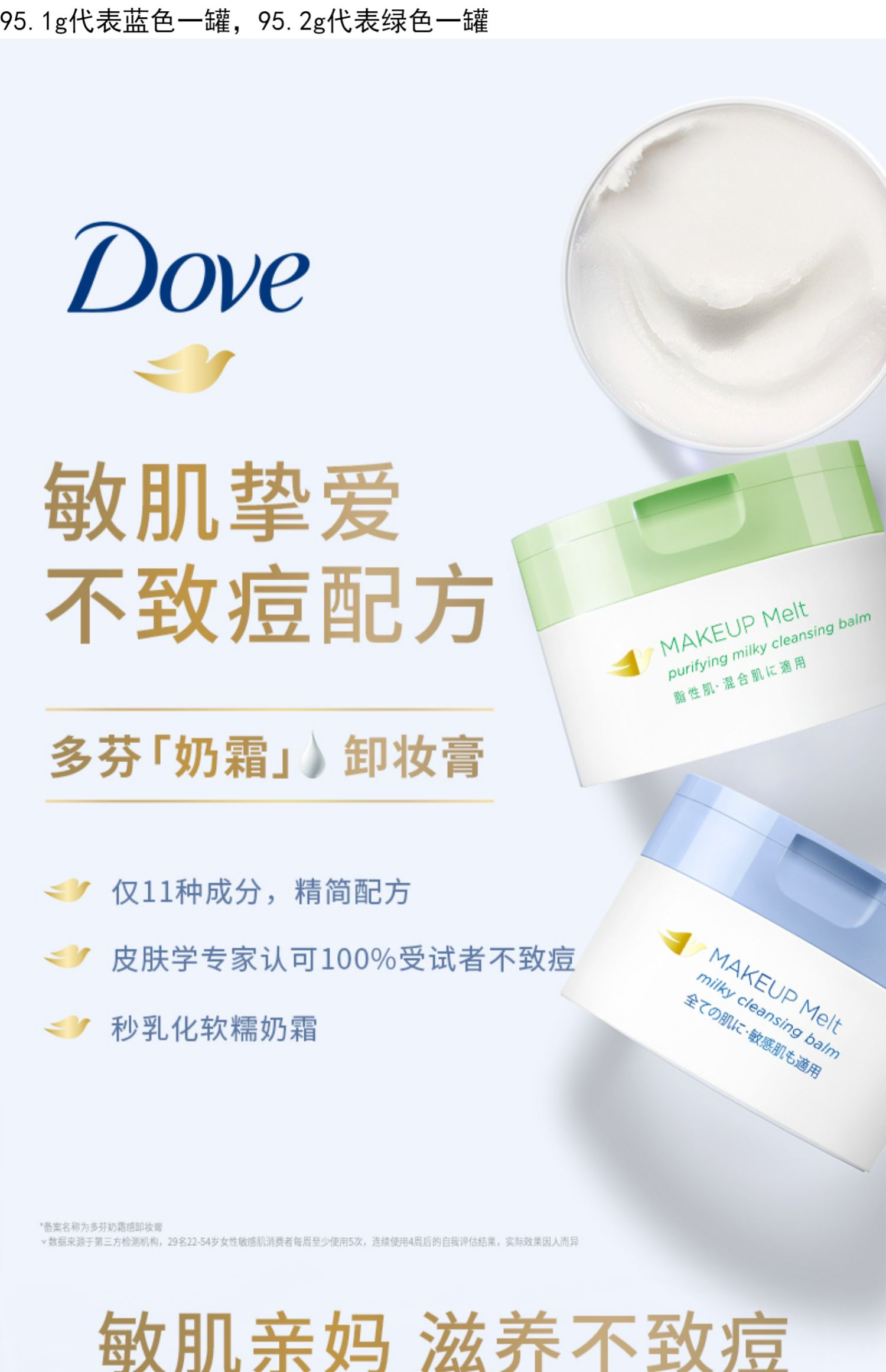 商品名称:多芬奶霜卸妆膏男女敏感肌/油痘肌滋养保湿温和清洁95g任选