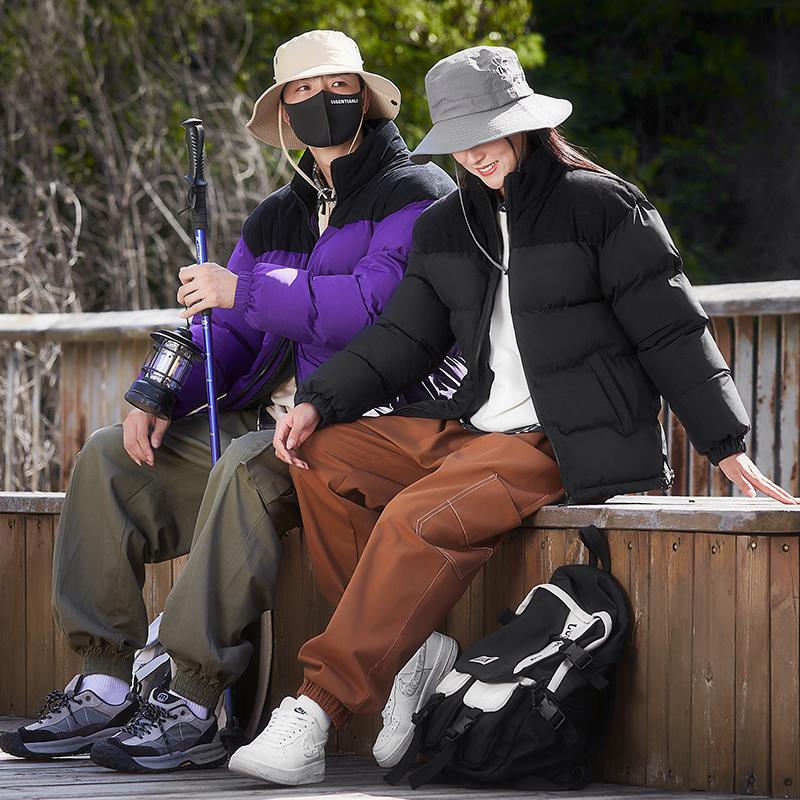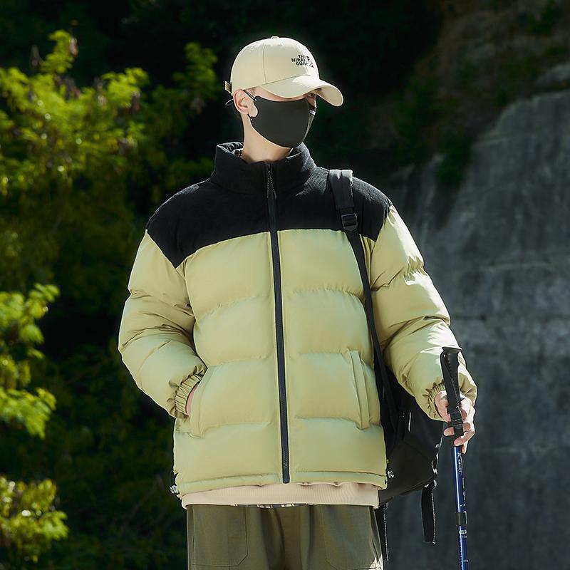 商品简介:YUIJENY情侣棉衣防风羽绒棉服拼接情侣大码时尚,