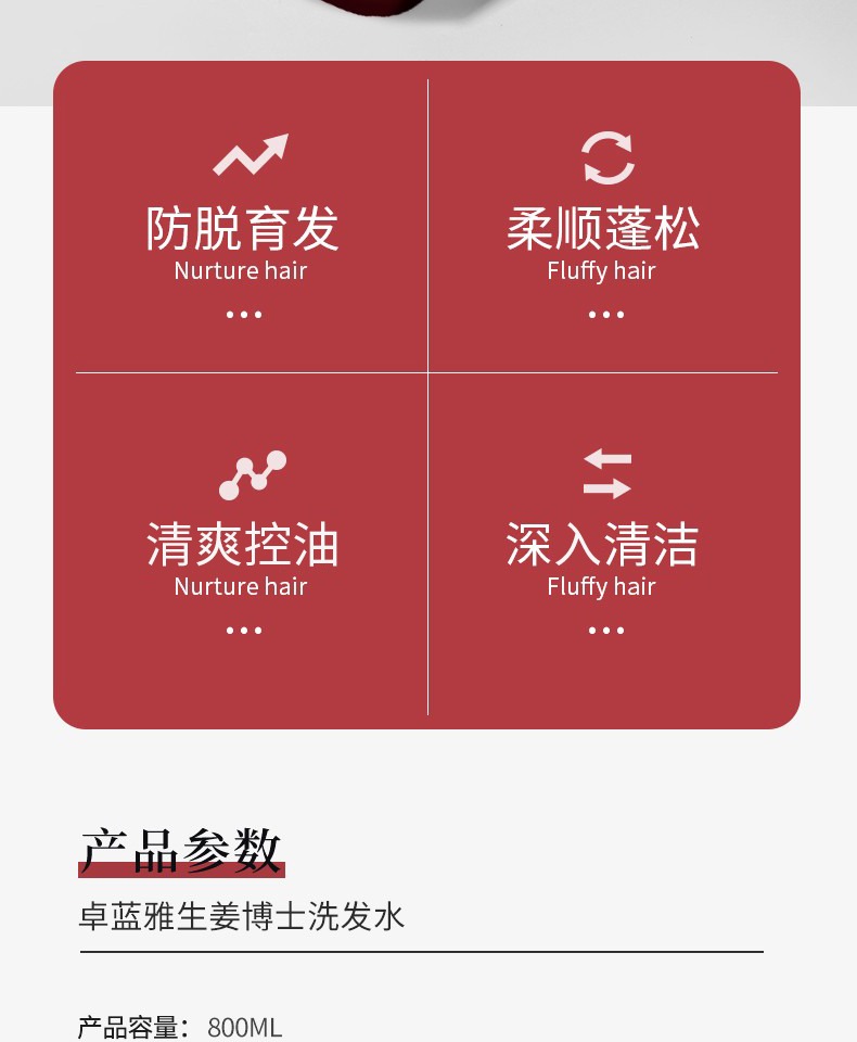 商品介绍:【卓蓝雅】生姜洗发水护发素800ml