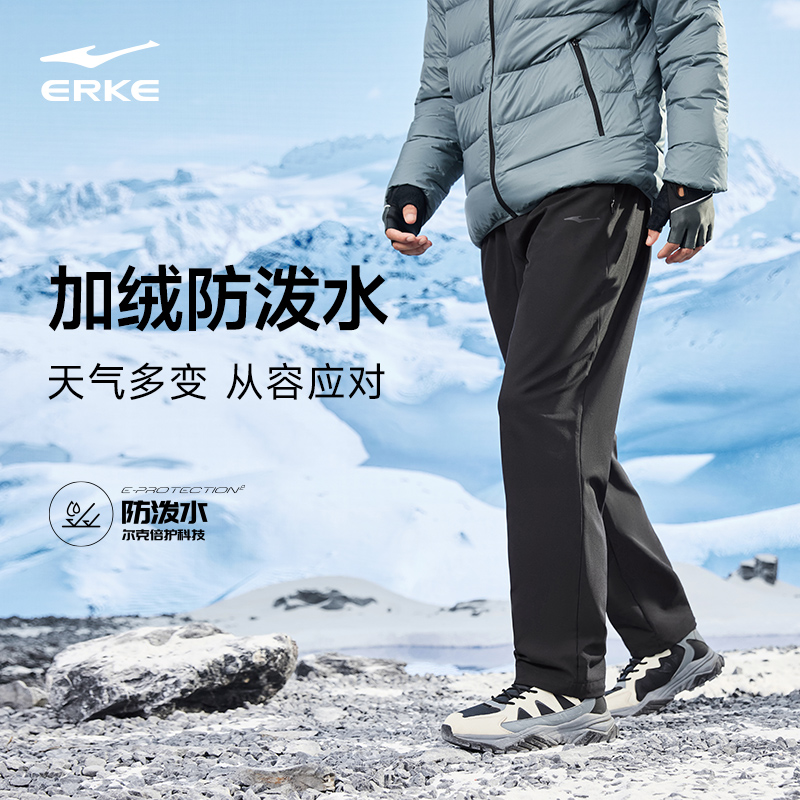商品名称:鸿星尔克加厚运动裤男2024冬季新款男士户外软壳裤防泼水加绒长裤