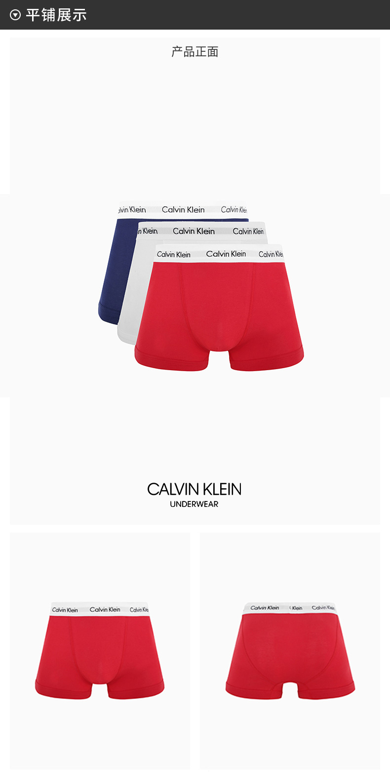 商品名称:【自营】Calvin Klein/凯文克莱男士经典平角内裤三条装U2662男款