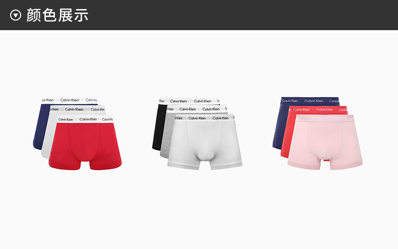 商品介绍:CalvinKlein男士经典平角内裤三条装