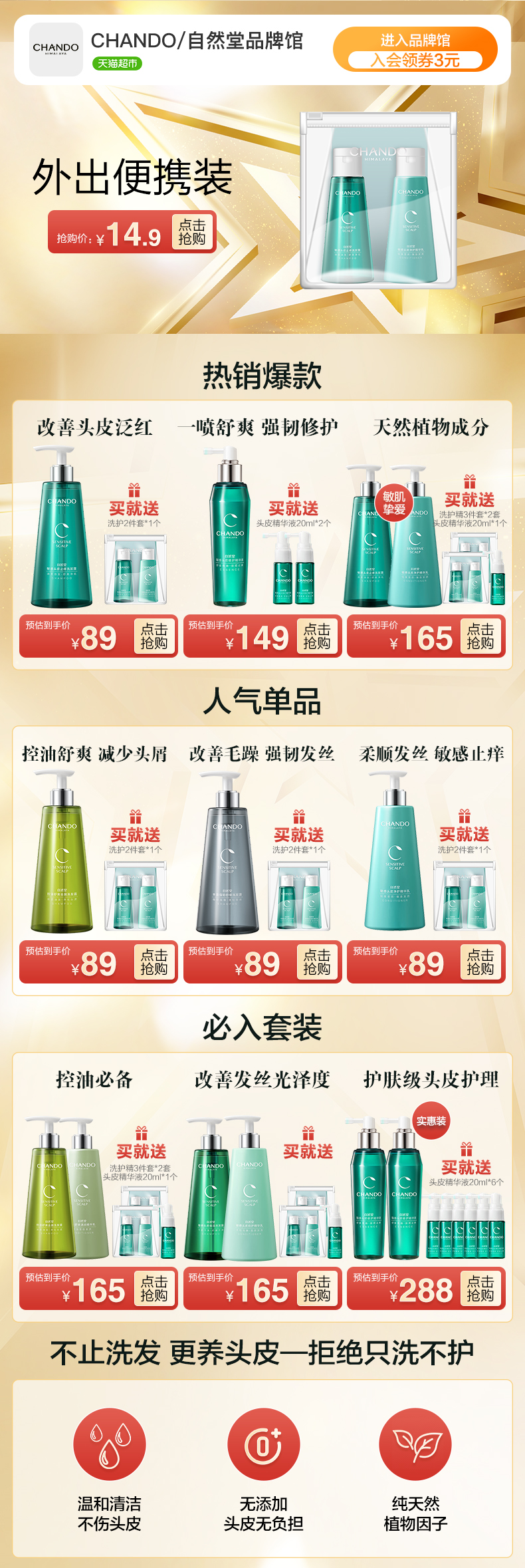 商品简介:【赵露思同款】自然堂舒缓止痒洗发露护发素550mL,舒缓呵护,改善敏感,不只洗发,更养头皮!真人真测,见证头皮舒适清爽!敏肌挚爱,天然植物因子,温和配方,美修全绿,头皮无负担!【赠运费险】