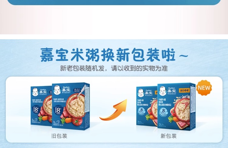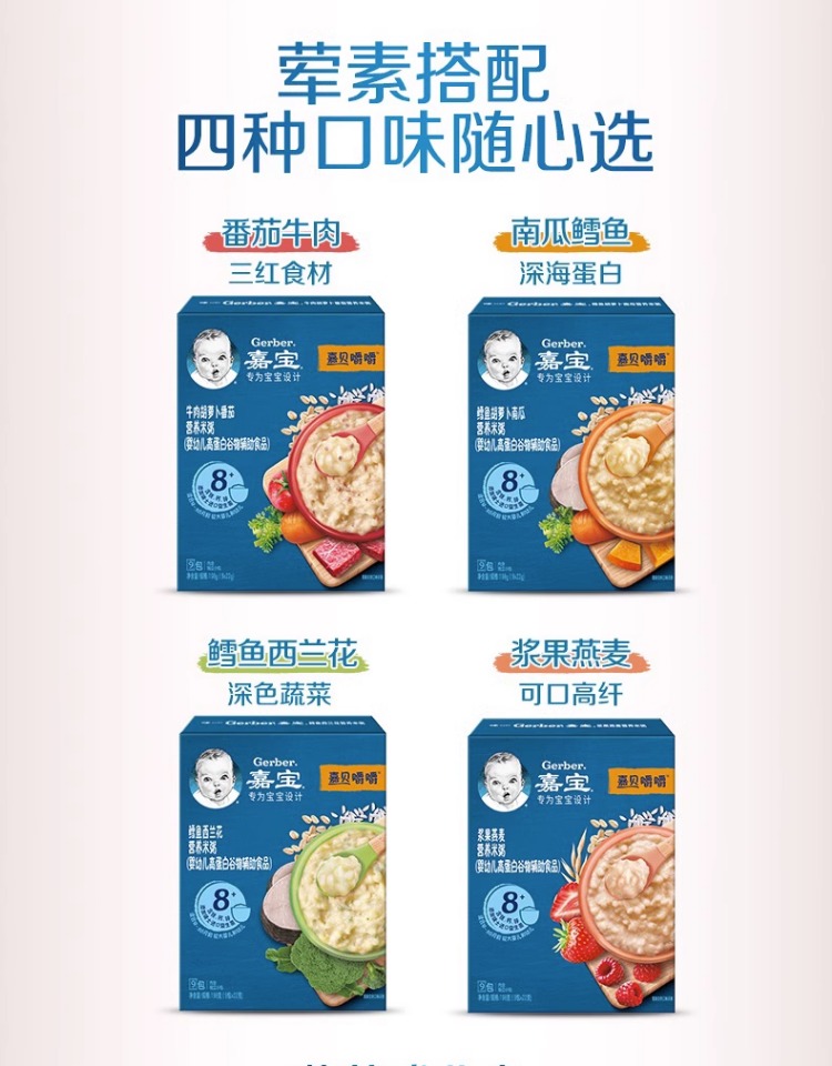 商品名称:Gerber嘉宝官方旗舰店高蛋白营养米粥磨牙婴儿宝宝辅食外出便携装