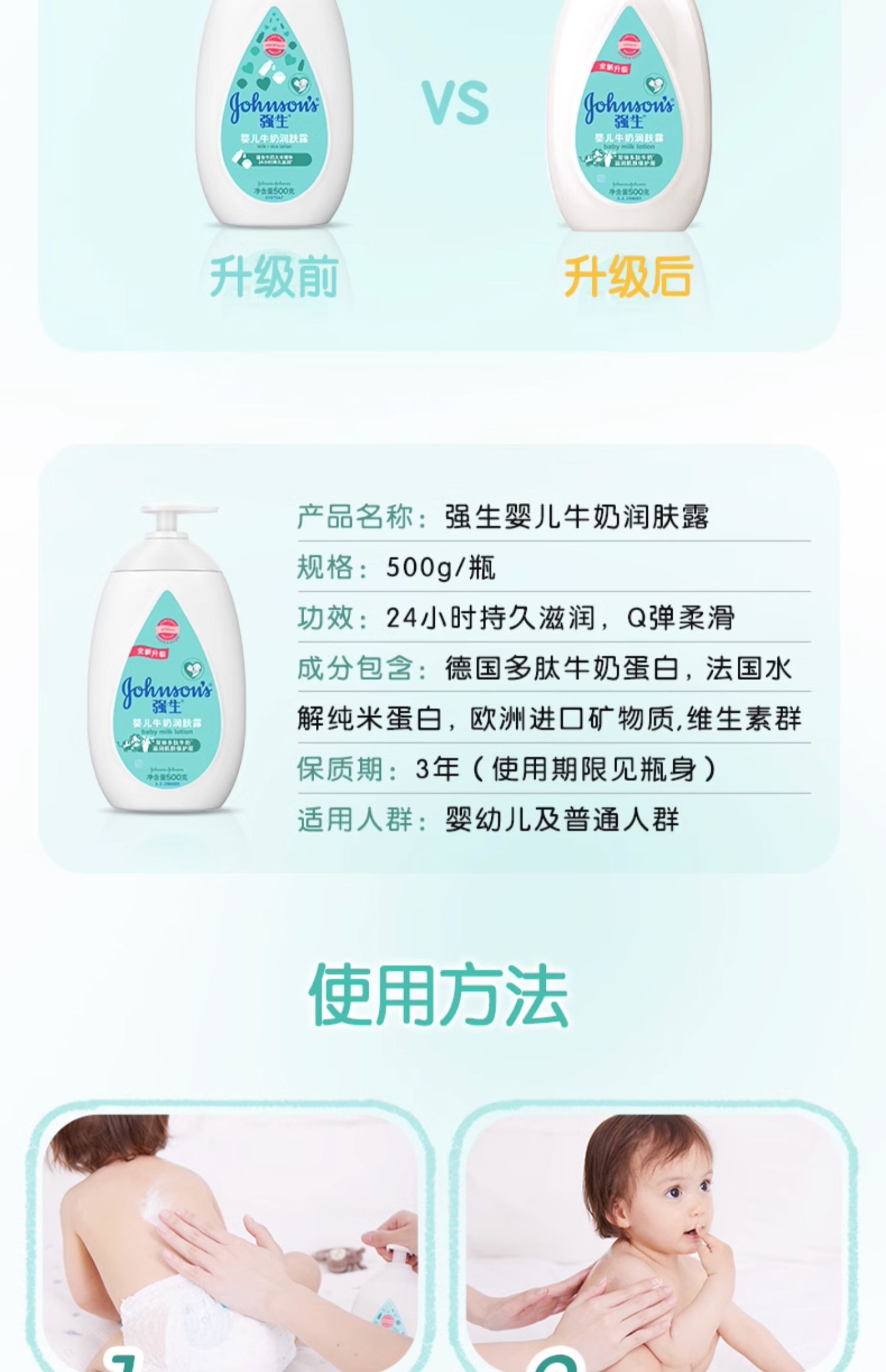 商品名称:强生婴儿牛奶身体乳润肤乳宝宝清爽保湿润肤露男女儿童滋润霜成人