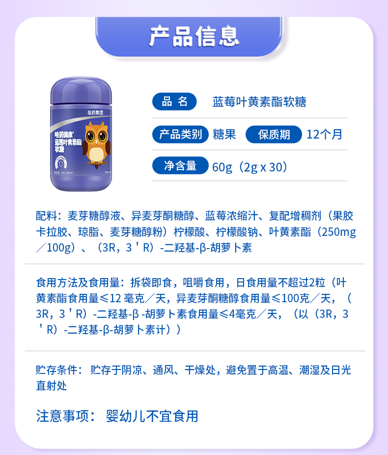 商品名称:哈药蓝莓叶黄素酯软糖30粒进口叶黄素酯富含花青素官方正品