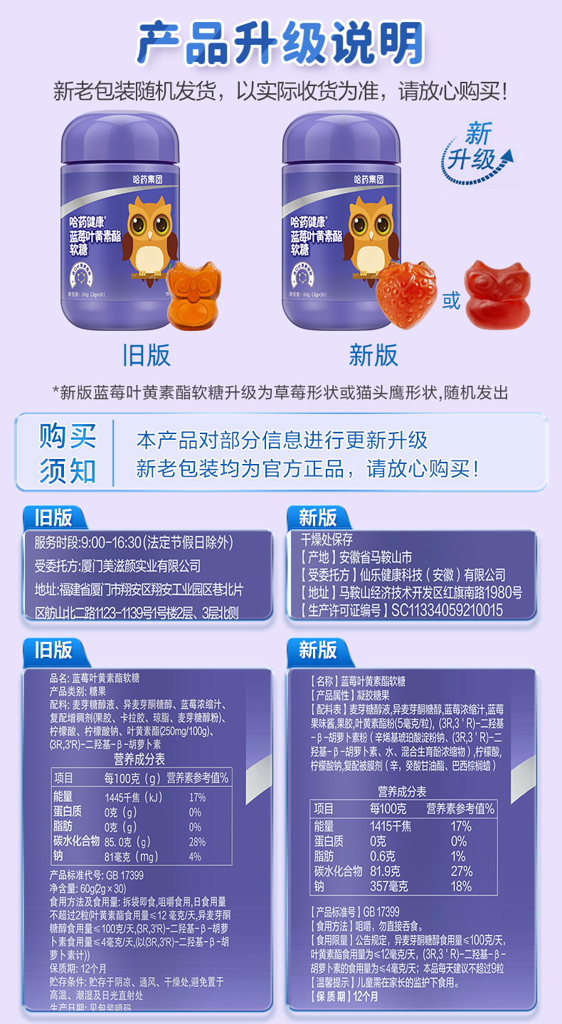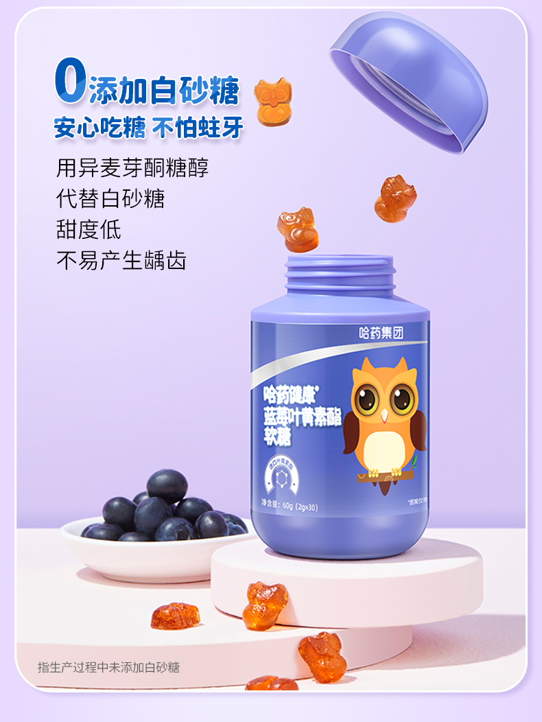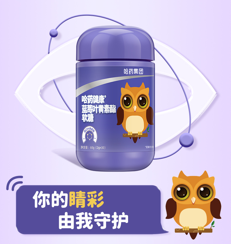 商品介绍:哈药蓝莓叶黄素软糖30粒×3瓶