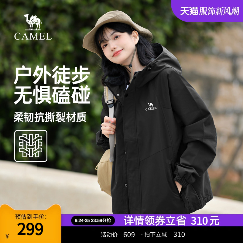 商品名称:骆驼山海夹克户外硬壳登山外套男女春秋款工装防风防泼水旅行服女