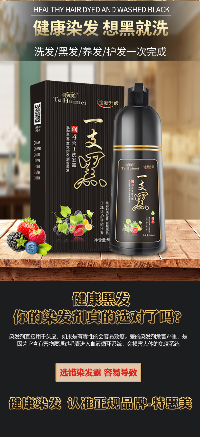 商品名称:一植物洗发水自己染发泡泡洗黑一支黑正品染发剂纯黑色发膜套装