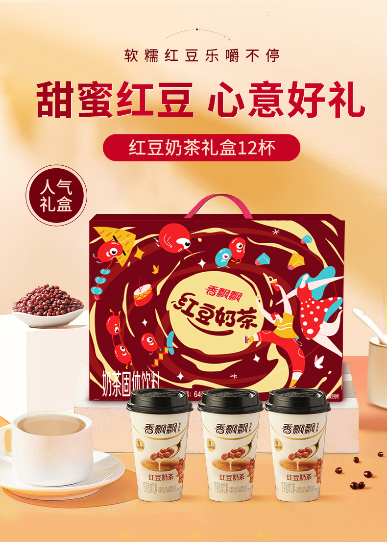 商品介绍:【礼盒装】香飘飘红豆奶茶12杯