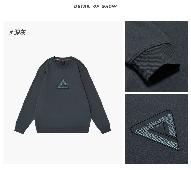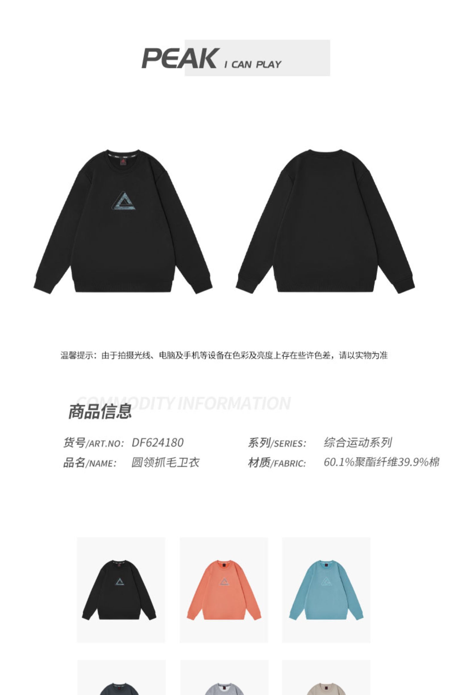 商品简介:匹克圆领运动卫衣秋季加绒休闲百搭跑步上衣防风保暖套头衫男。
