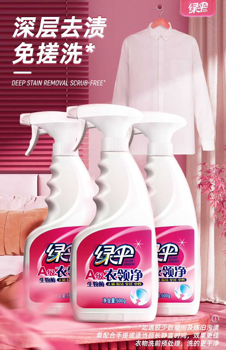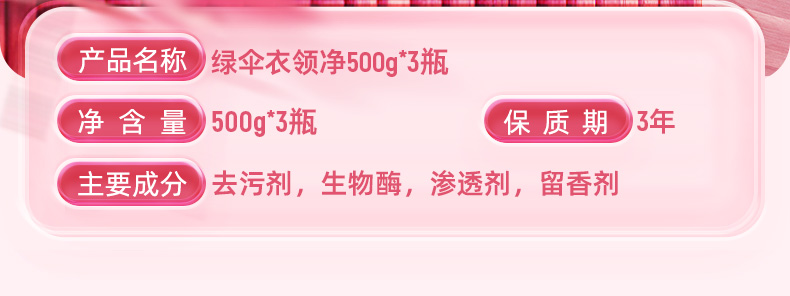 商品介绍:绿伞衣领净500g*3瓶洗衣预洗喷剂洁净干洗店
