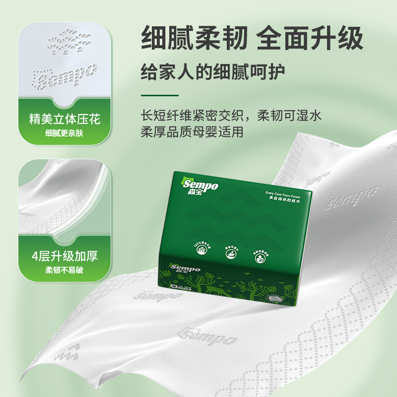 商品简介:【森宝旗舰店】4层加厚20包,湿水不破,韧性加满分,每一个细节,每一次升级,都让你的生活幸福指数up。擦拭无尘屑,亲肤不刺激,手慢无!