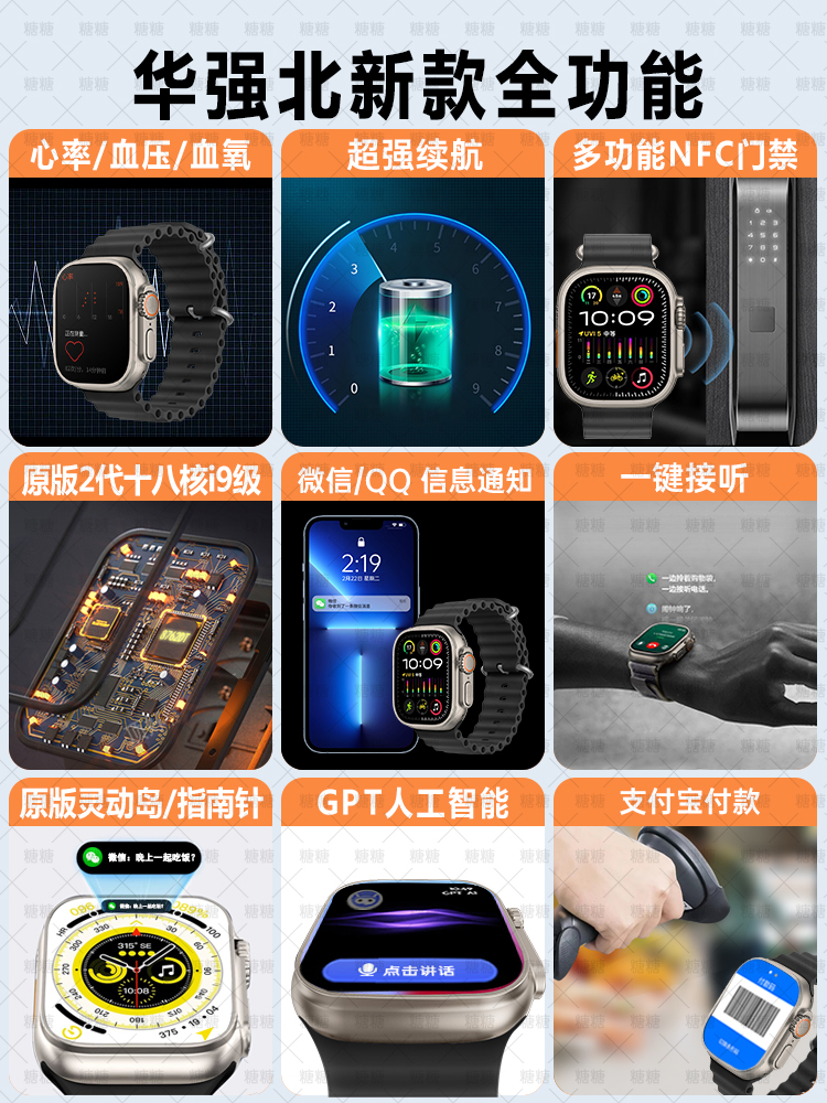 商品简介:2024新款,华强北手表S9,40营+券后199(标价2299-优惠券2100=199)