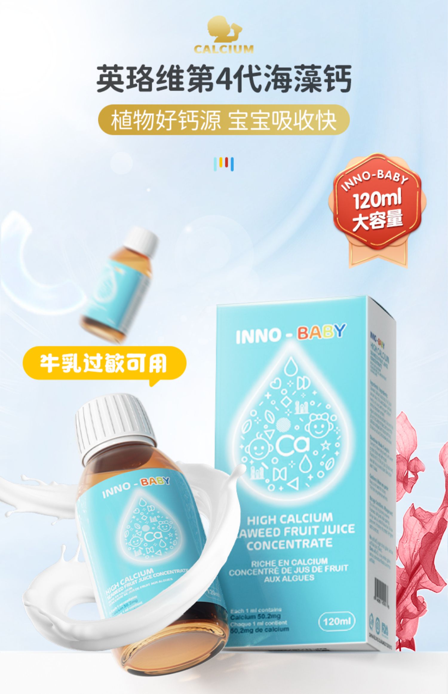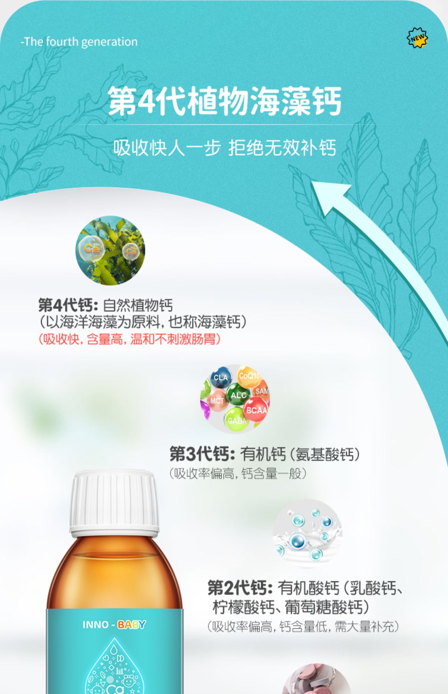 商品简介:温和海藻钙,足量追高长,选4代海藻钙,孩子成长, 选藻钙。