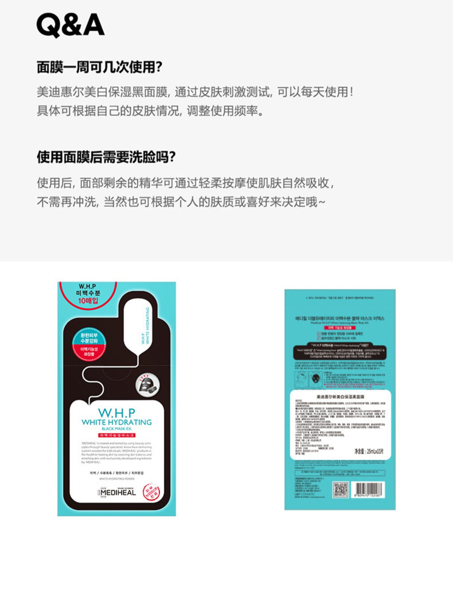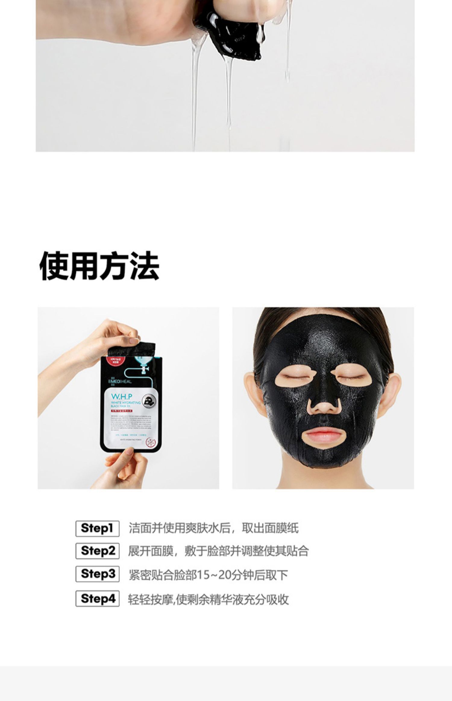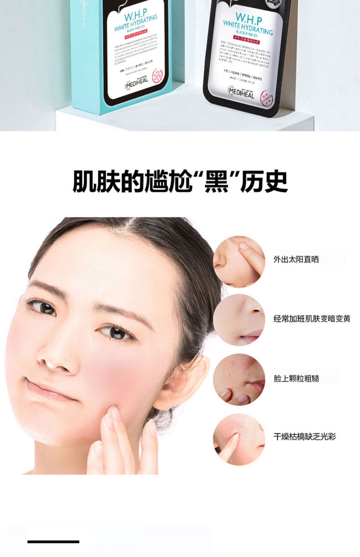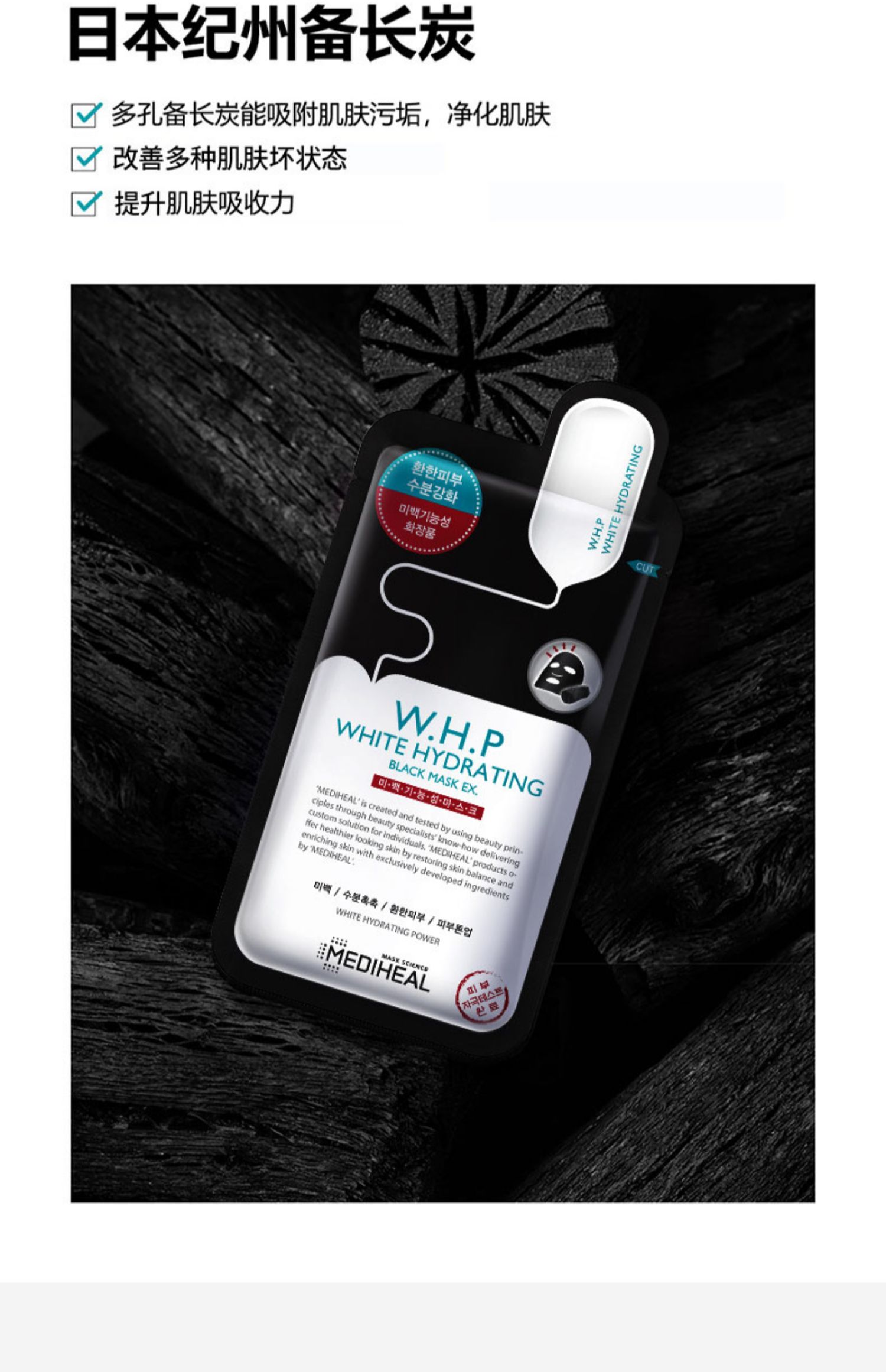 商品名称:【秋冬必备】美迪惠尔备长炭烟酰胺WHP美白黑膜补水保湿10片