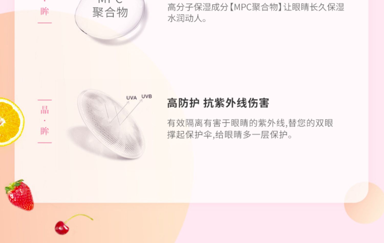 商品简介:日本美尼康美瞳,富含高分子保湿成分MPC聚合物,长效保湿,眼睛不干涩,还可防紫外线带来的危害!上眼天生浅瞳轻松打造混血感!