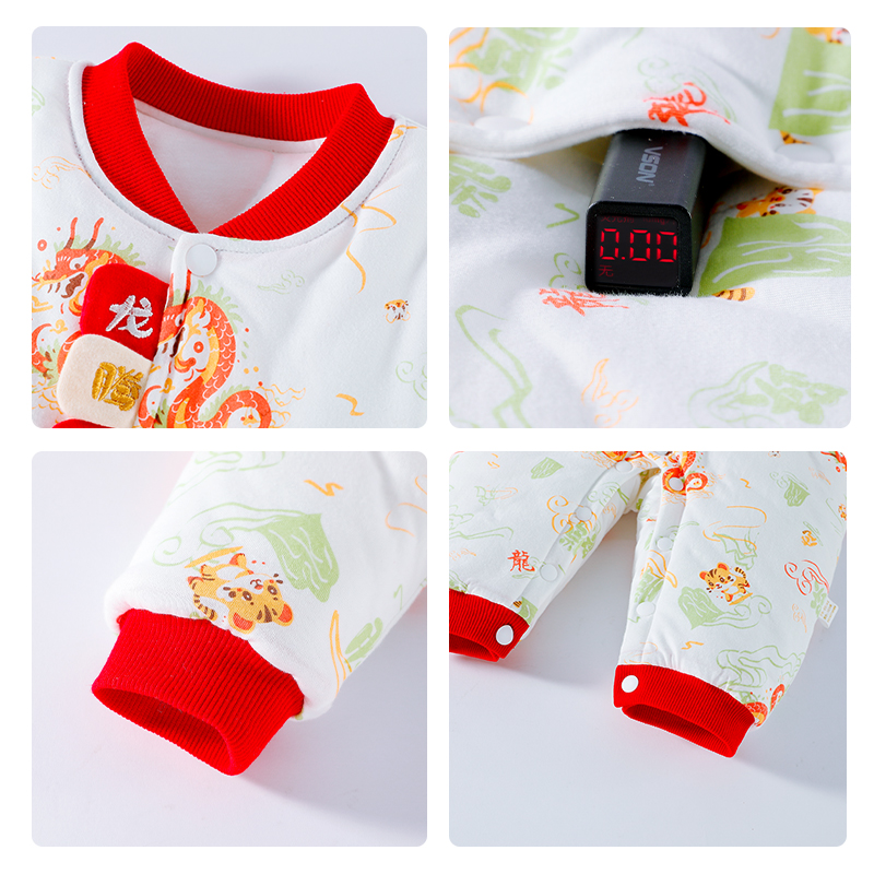 商品介绍:木木屋婴儿夹棉连体衣冬款