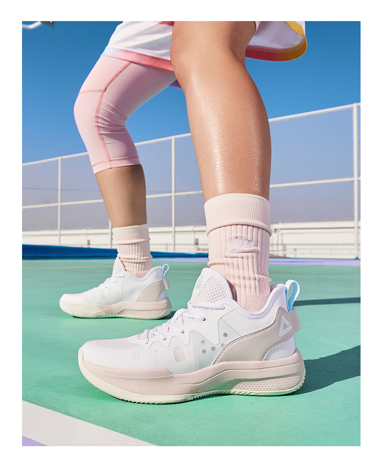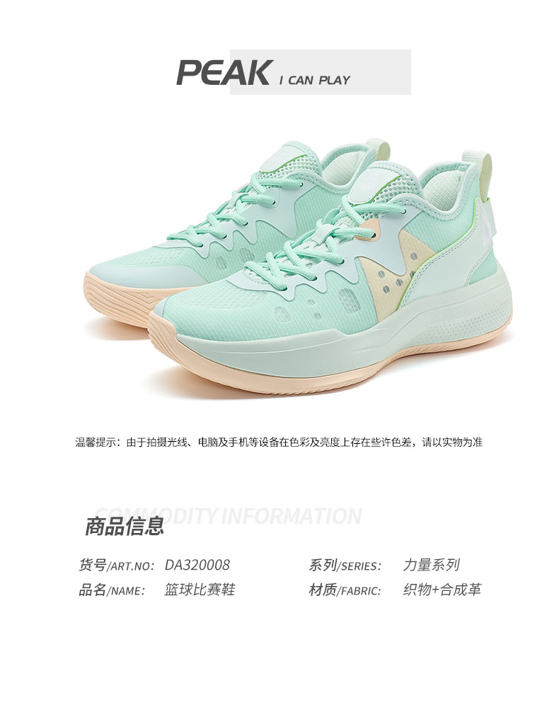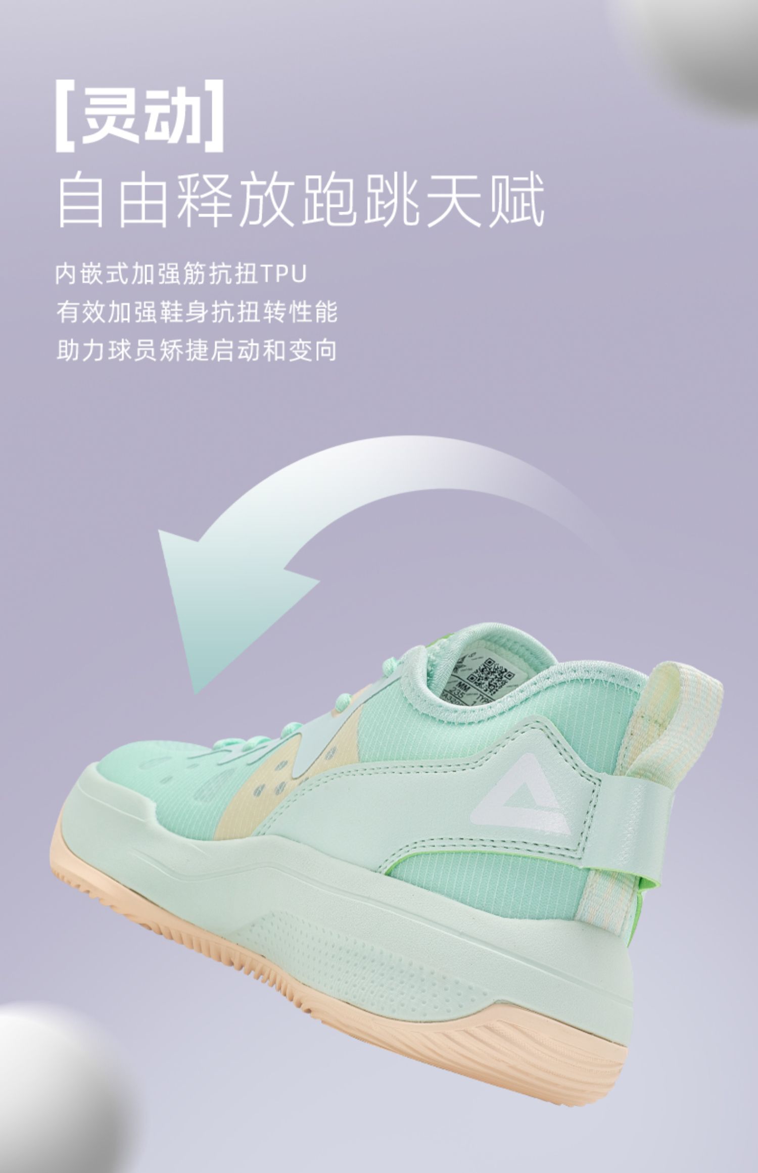 商品简介:【Peak/匹克】强力支撑的同时兼具透气性和包裹感,有效保护脚踝安全,减少足部运动伤害,采用分区域多层PP膜,受力较小区域,增加镂空处理,带来舒适透气的上脚体验~