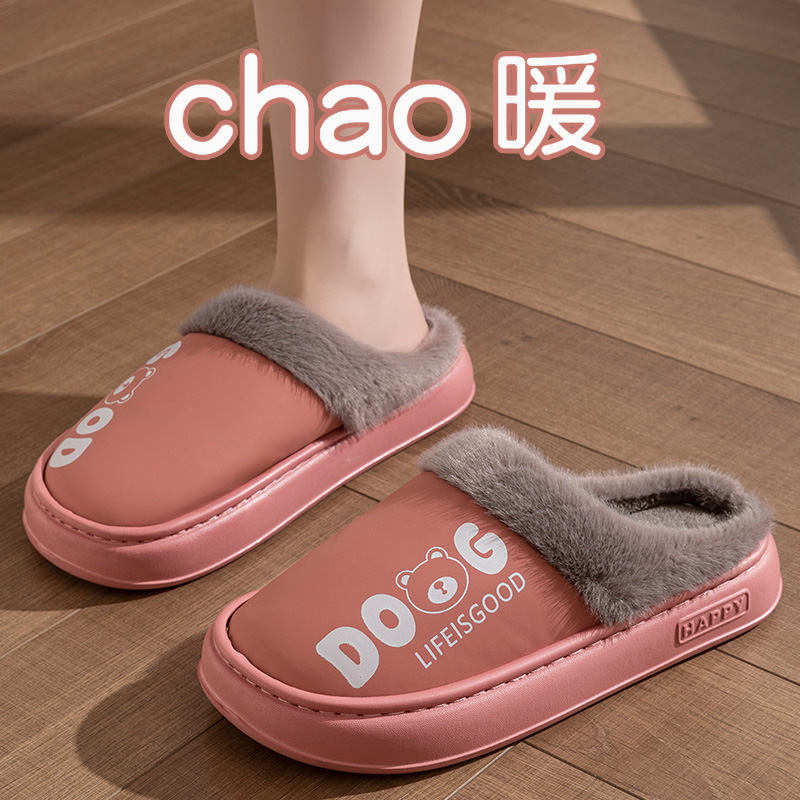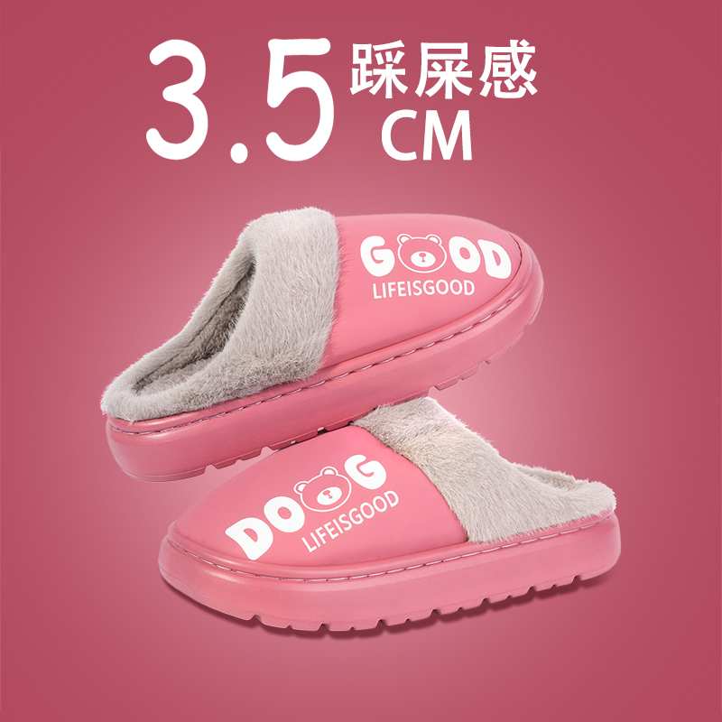 商品名称:防水PU皮面棉拖鞋女士冬季室内家居外穿保暖防滑厚底棉鞋男款冬天