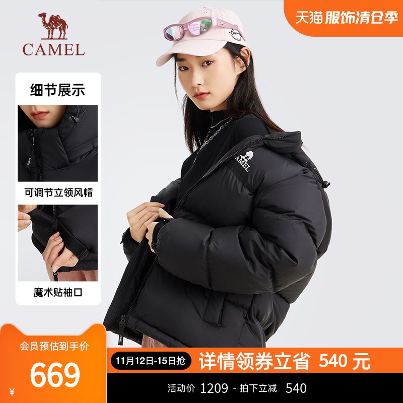 商品名称:骆驼女装羽绒服2024秋冬新款连帽加厚保暖防水面包极寒短外套男女