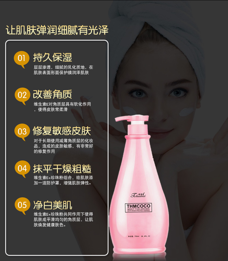 商品简介:身体乳,宠爱每一寸肌肤~24小时持续补水,润白亮泽,改善暗沉,柔滑细嫩肌肤