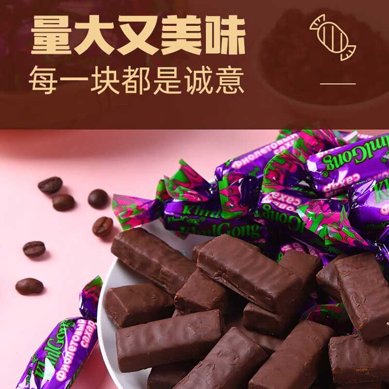 商品简介:俄罗斯风味紫皮糖+牛轧糖,浓浓巧克力,香浓幼滑,层层酥脆,香甜美味,满足你的味蕾,甜甜的好吃停不下来,每一颗都让你享受俄罗斯风情!