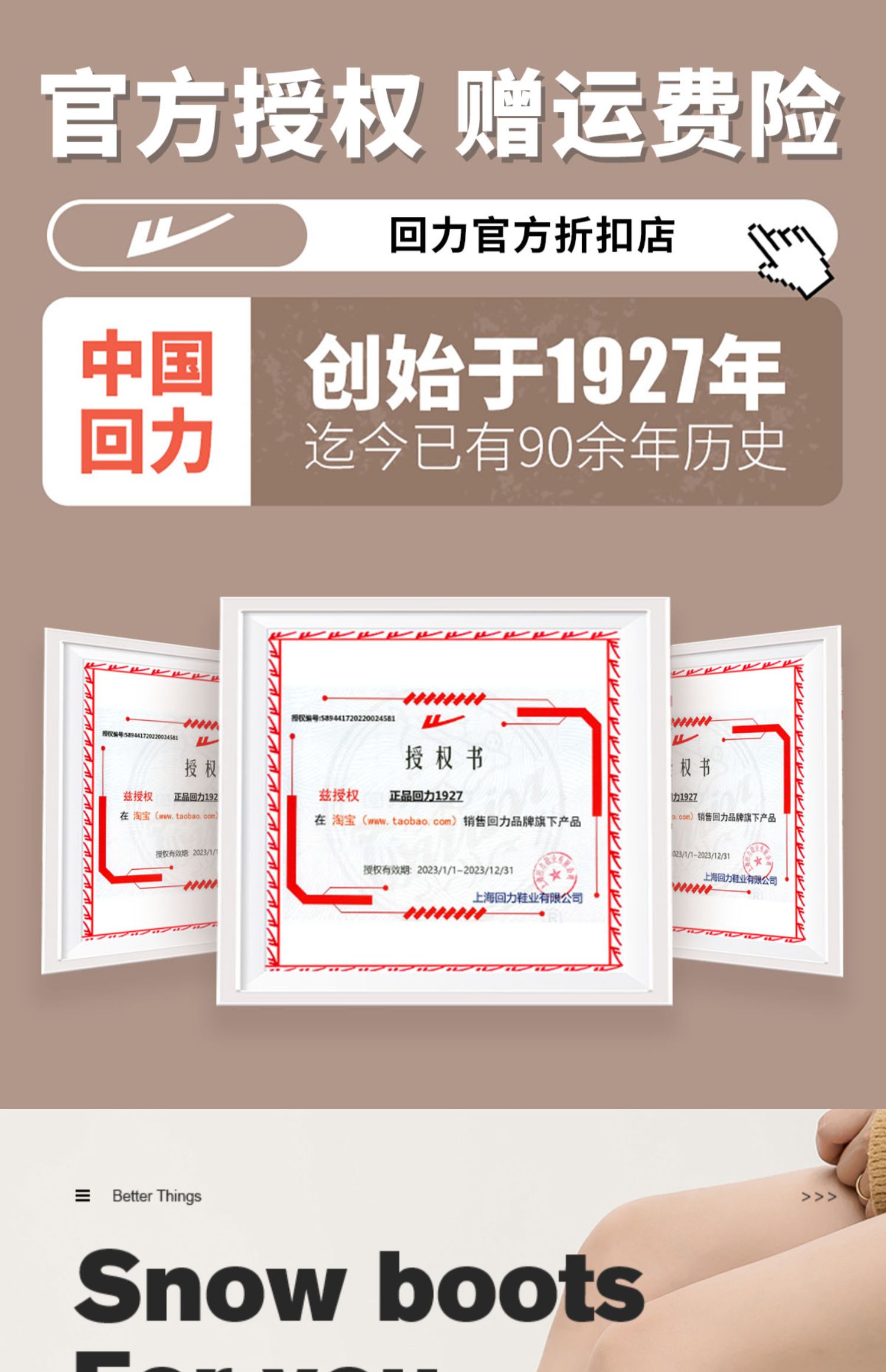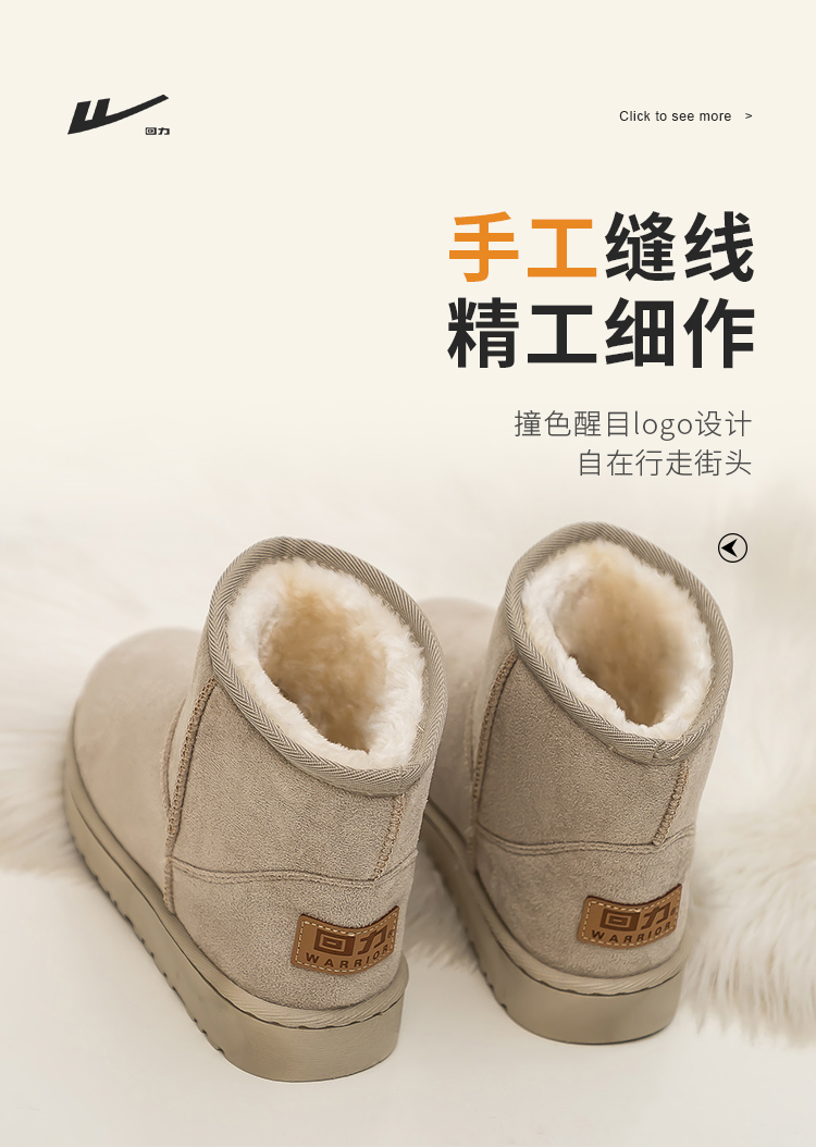 商品名称:回力雪地靴女冬加绒加厚2024新款冬季东北防寒保暖雪地棉鞋女短靴