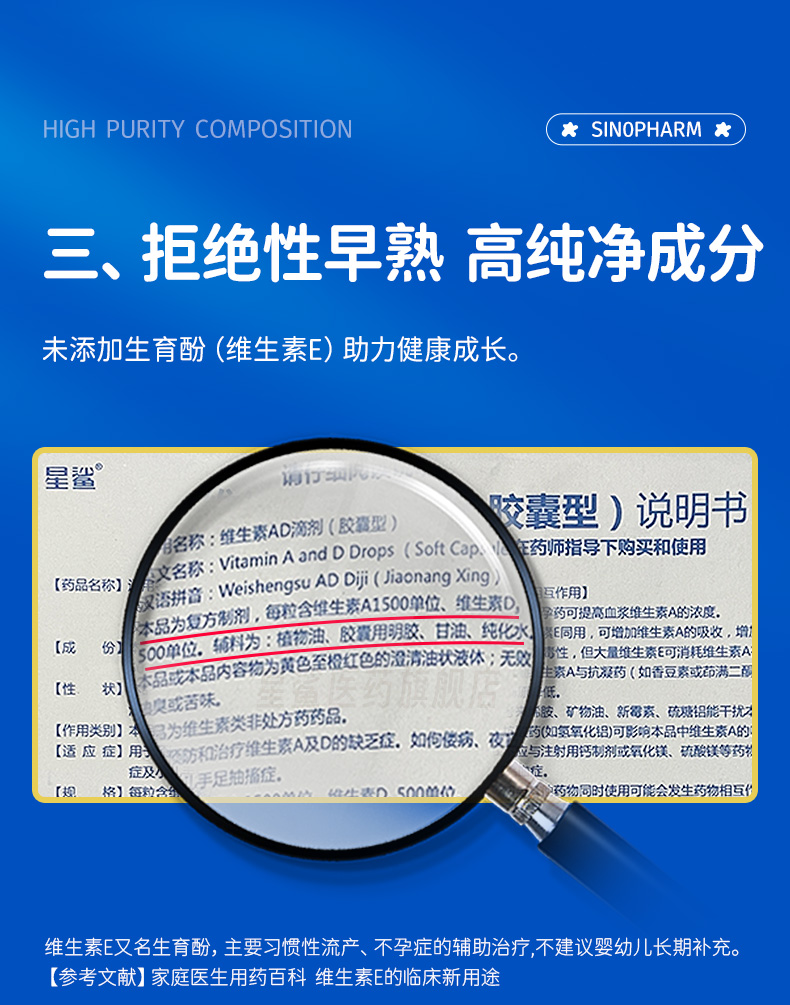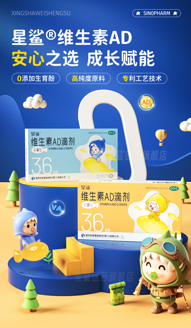 商品简介:星鲨官方旗舰店AD同补营养一步到位,4个0高标准原料,成分纯净,喂养安心,不含生育酚!!!科学配比,提升抵抗力,补充营养,1-18岁适用!