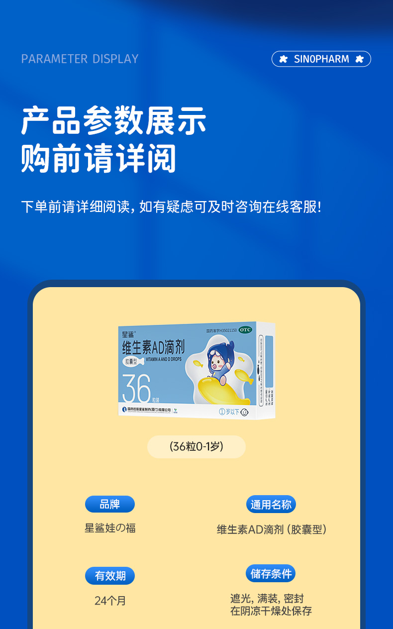 商品名称:星鲨婴儿维生素AD0~1岁宝宝维A维D儿童婴幼儿维a维d儿童维d3