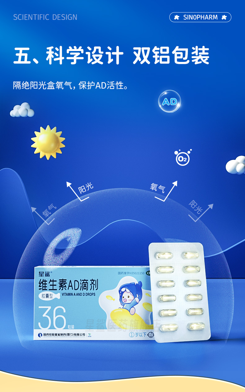 商品介绍:星鲨AD滴剂胶囊维生素4盒144粒