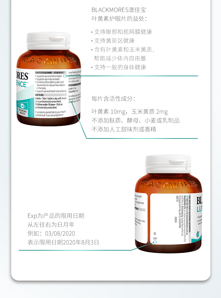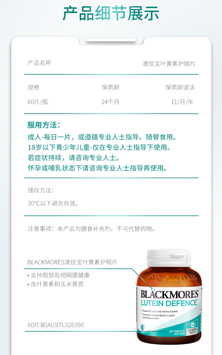 商品名称:【自营】BLACKMORES澳佳宝叶黄素护眼片成人青少年视力护眼60片