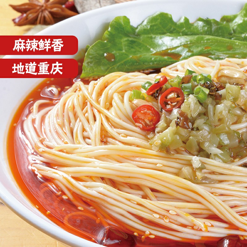 商品简介:正宗重庆小面调料,香辣过瘾,“吸溜”起一夹裹满红油的面条,麻辣鲜香迅速在口腔弥漫开来!真正做到了辣而不燥,回味绵长之口感。在家就能吃上最正宗的重庆小面!