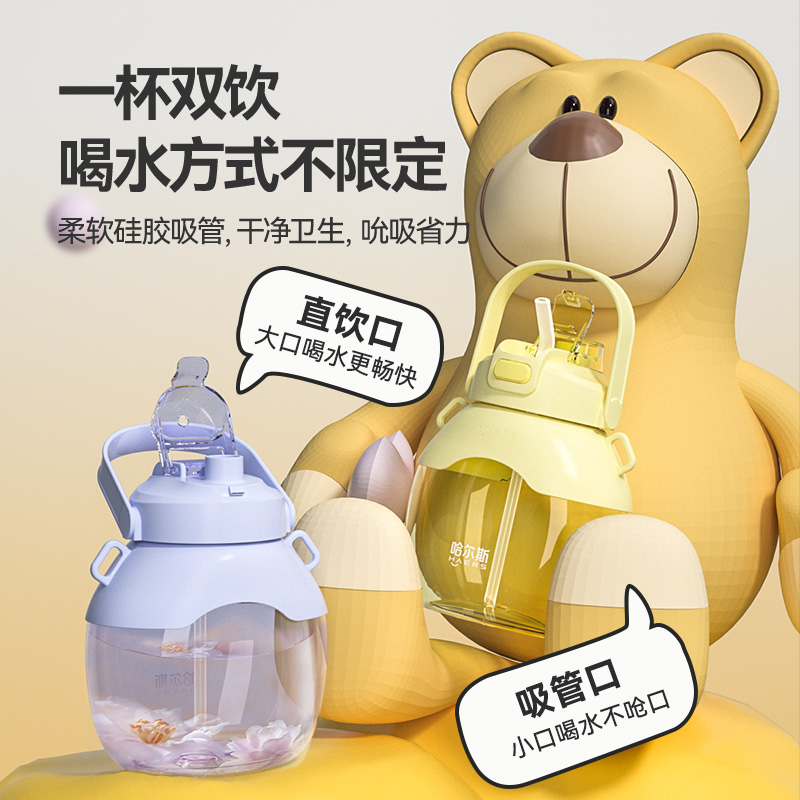 商品名称:哈尔斯大容量水杯塑料女学生夏季高颜值喝水杯吸管大肚水杯子儿童