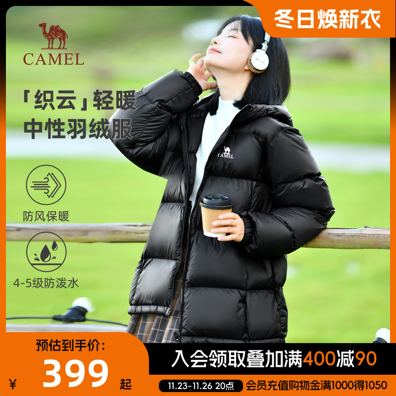 商品介绍:骆驼黑色羽绒服反季女装2024秋季新款