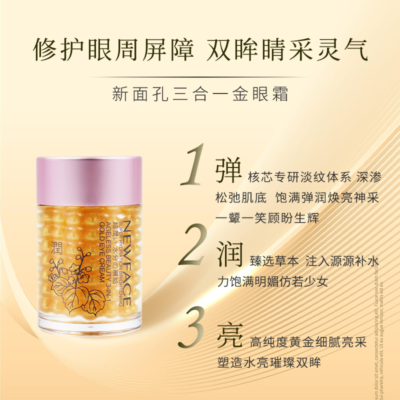 商品介绍:新面孔三合一金眼霜提拉紧致抗皱