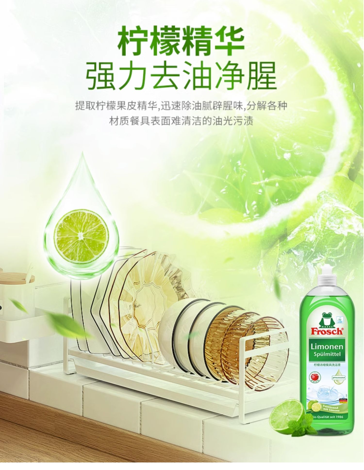 商品名称:德国进口Frosch柠檬浓缩孕妇食品级不伤手家用去油洗洁精洗洁液