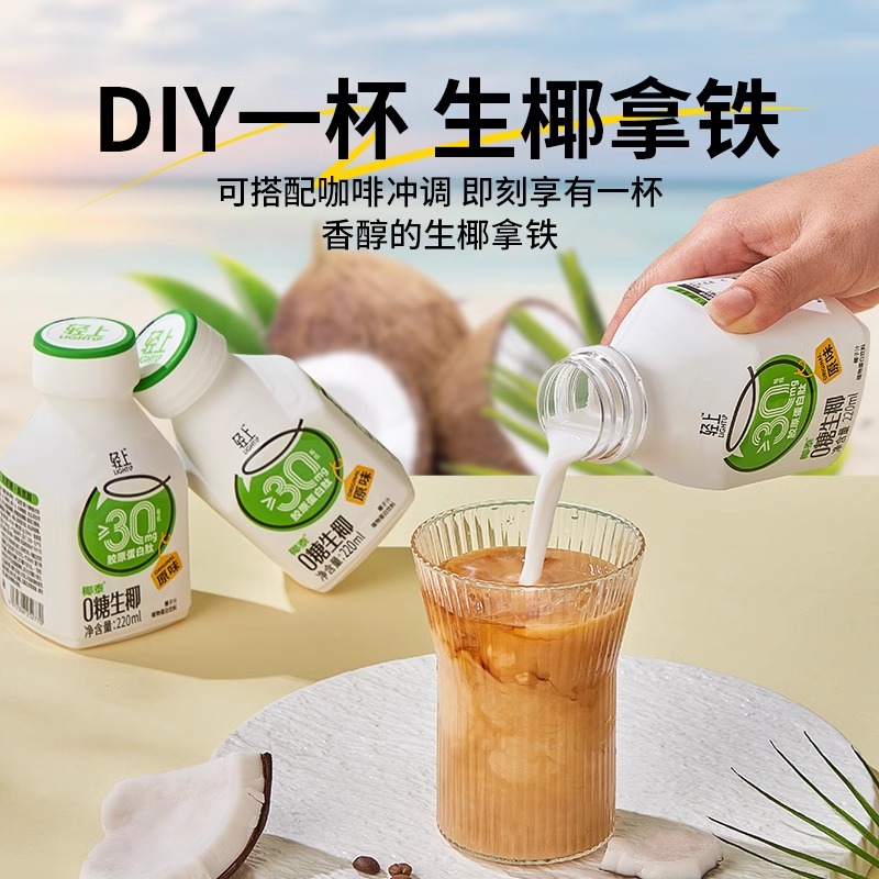 商品名称:轻上椰子水0糖生椰220ml*10瓶/整箱植物蛋白饮料椰奶椰乳椰子汁