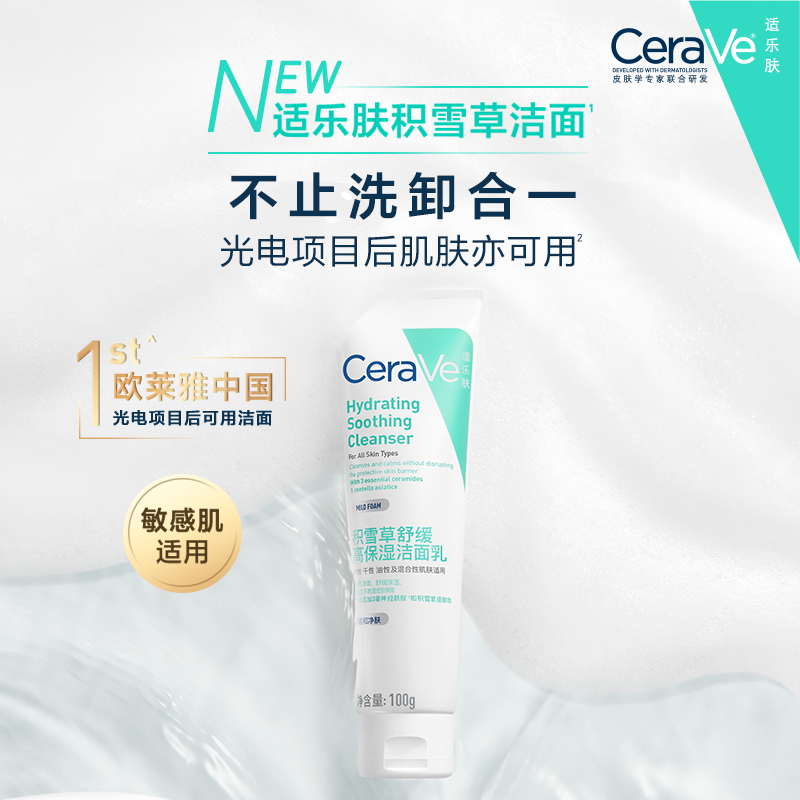 商品简介:破新价格!凑单更低!到手CeraVe适乐肤积雪草舒缓高保湿洁面乳100g!购物金折扣87折更便宜!CeraVe适乐肤积雪草舒缓高保湿洁面乳,温和深清洁,性价比甄选,洗得更舒适!!