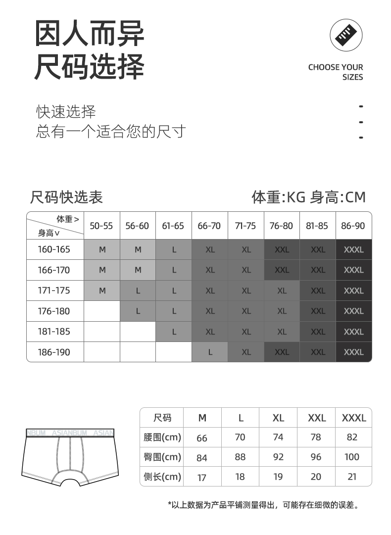 商品名称:【拍3件69/5件99】Asianbum男士内裤四角短裤纯棉平角简约中腰裤