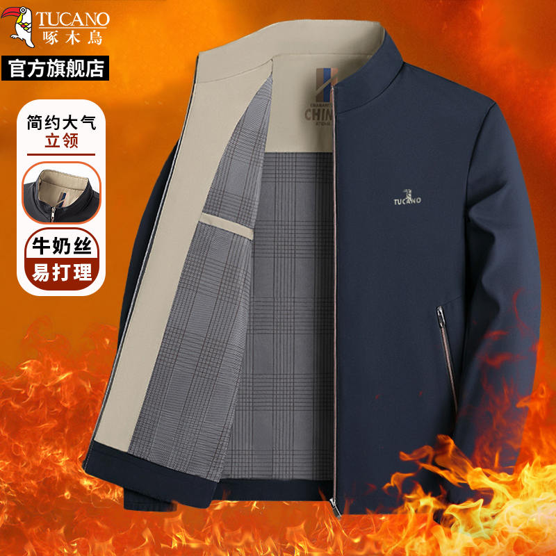 商品名称:啄木鸟棉服男款冬季商务夹克2024新款加绒加厚百搭休闲棉衣外套男