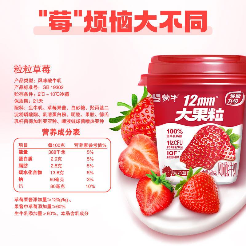 商品介绍:百补25.9!蒙牛大果粒酸奶260g*6杯