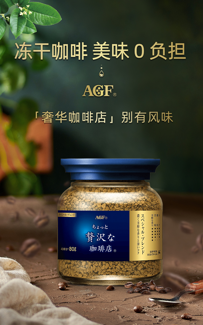 商品简介:日本agf咖啡美式黑咖啡蓝罐速溶咖啡无蔗糖冻干咖啡粉80g。0蔗糖0负担,浓郁醇厚,口感优越,层次丰富!特有T2ACMI烘焙技术,平衡酸苦味,锁住香气!