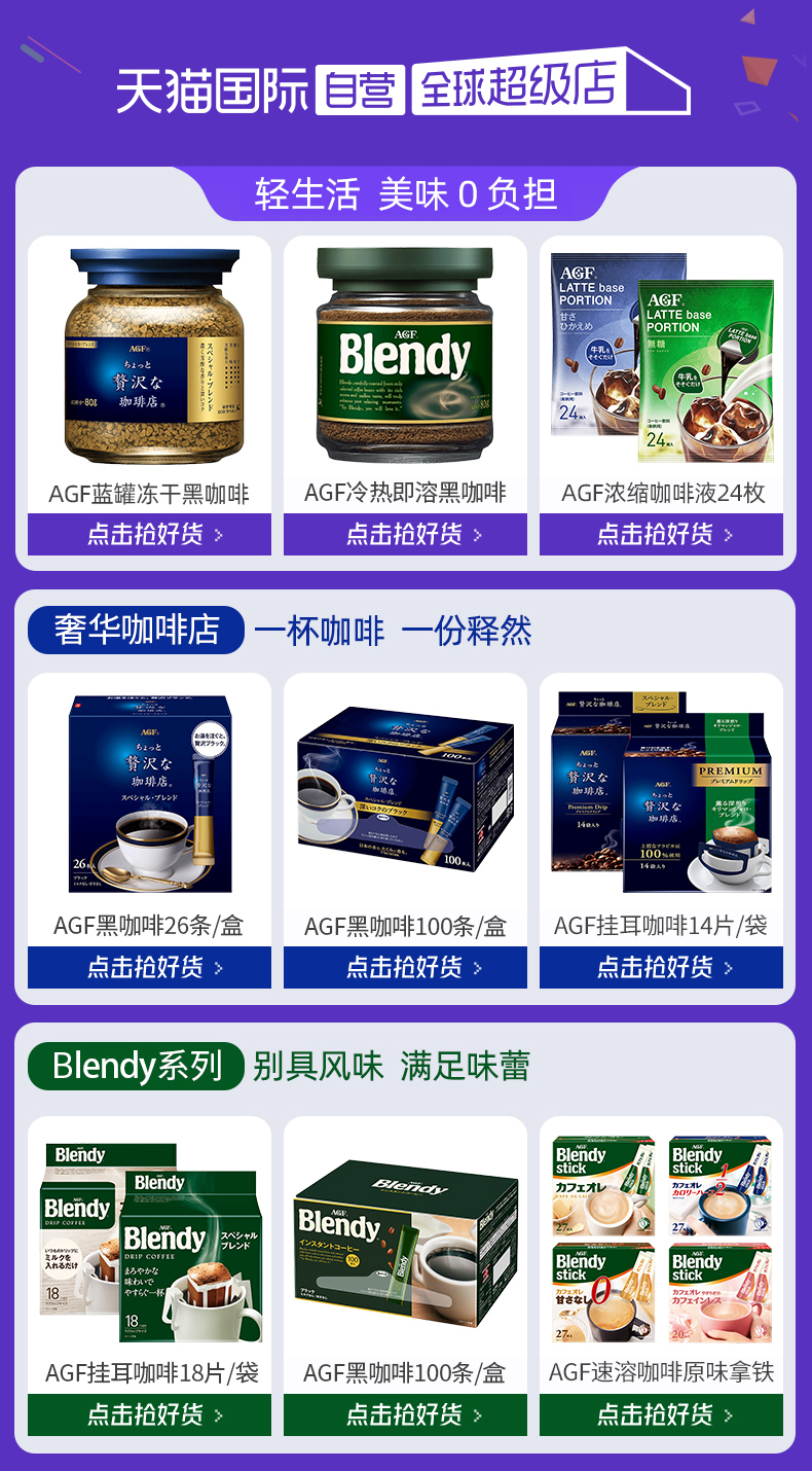 商品介绍:日本agf咖啡蓝罐美式黑咖啡80g