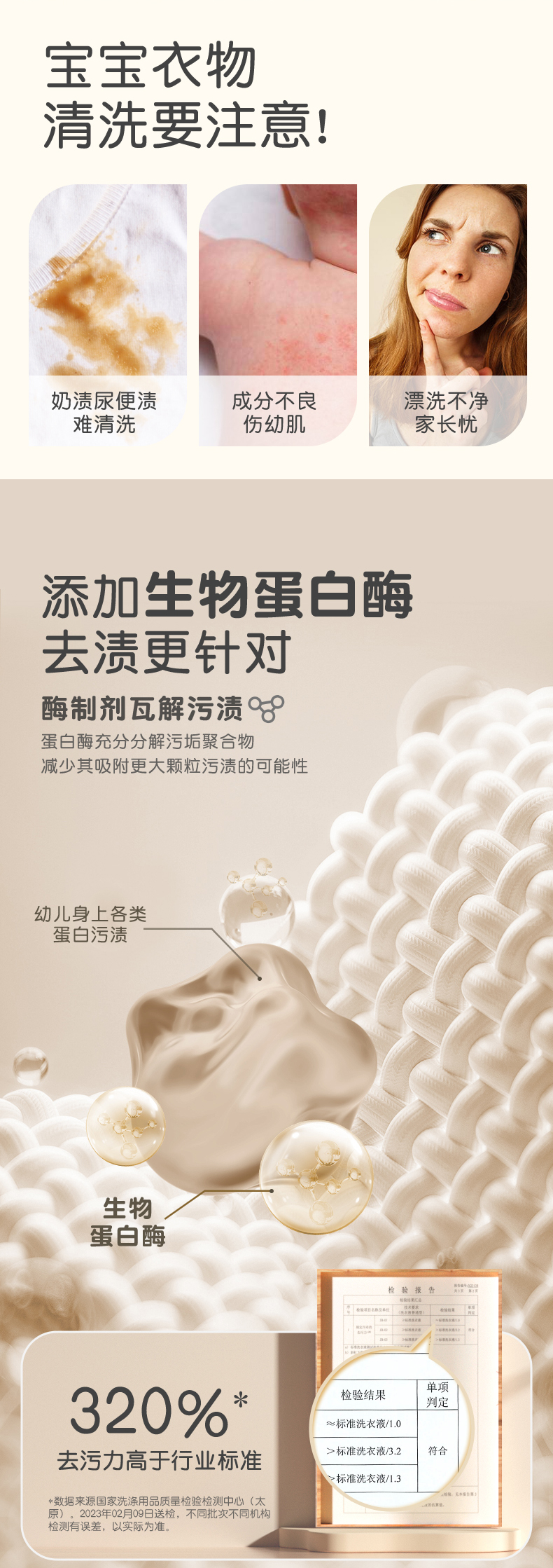 商品简介:【下单立享6.5折】宝宝专用洗衣液,不含荧光增白剂,酵素去渍,全新升级,为宝宝精心研发,一招搞定宝宝衣物清洁烦恼!