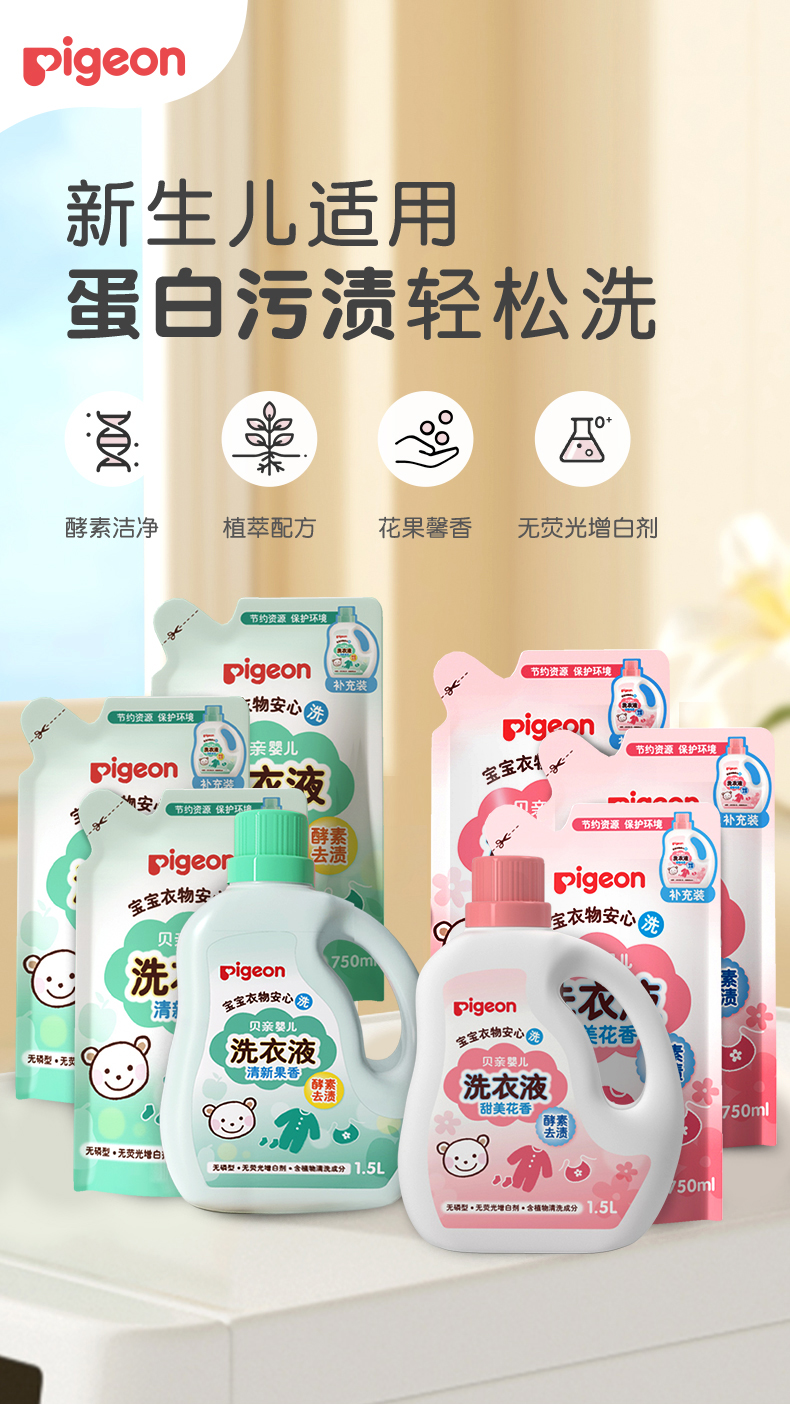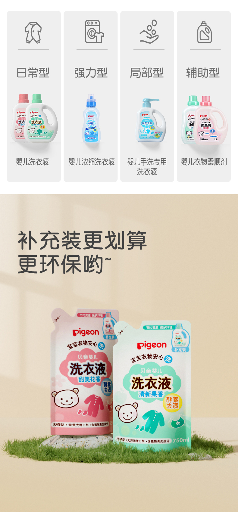 商品名称:Pigeon贝亲婴儿洗衣液宝宝衣物清洗剂3.75L儿童清洗液皂